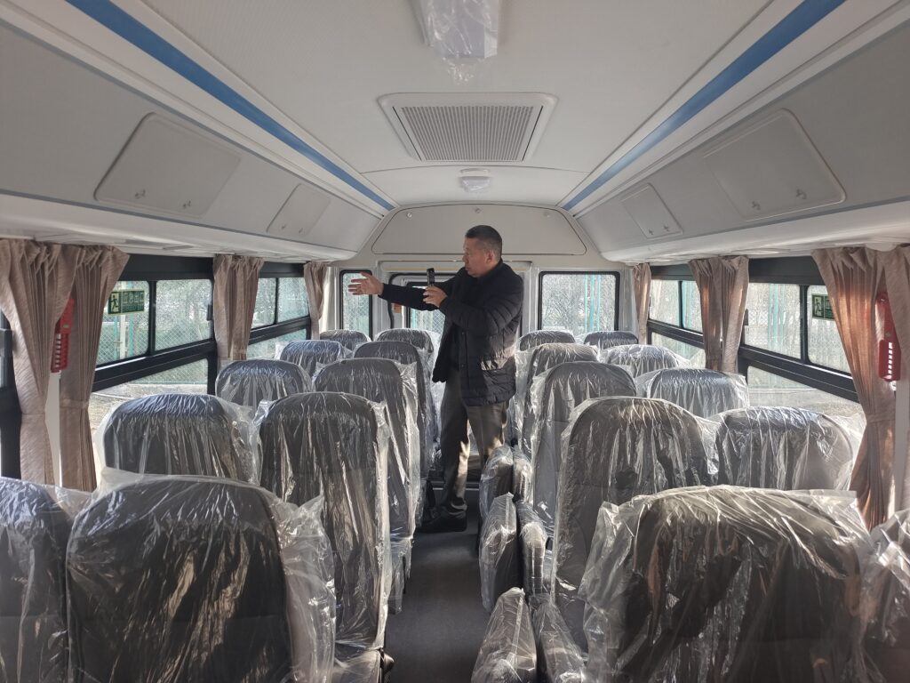 School bus 24-45 Seats School Bus uses low-back upholstered seats, largepanoramic mirrors inside the bus, stop signs and speed limit devices. Equipped with a tirepressure alarm system and intelligence, the vehicle has a high safety factor, which canabsolutely guarantee the safety of students. The drive system has low noise and is equippedwith long-distance double flexible transmission, which is light and comfortable for gear shifting.